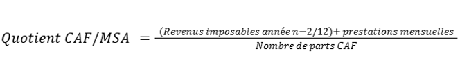 O quociente familiar da CAF e da Mutualité sociale agricole (MSA): é utilizado para atribuir certas prestações da acção social e certas taxas preferenciais ligadas às crianças (creches, cantinas, creches, actividades desportivas e culturais subsidiadas).