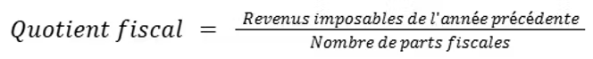 Para isso, o cálculo do quociente leva em consideração não só os recursos financeiros, mas também a sua composição (família monoparental, número de filhos, filho com deficiência, etc.). O quociente é então integrado numa escala: quanto mais baixo for o quociente familiar, mais o agregado familiar pode beneficiar de uma escala vantajosa, dando-lhe direito a taxas reduzidas e a ajudas acrescidas.