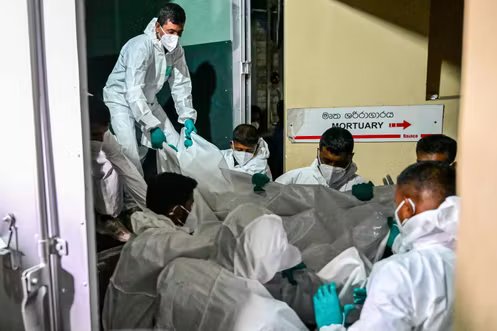 Os corpos de marinheiros iranianos que morreram quando seu navio foi torpedeado na costa sul do Sri Lanka, no necrotério do Hospital Karapitiya em Galle, Sri Lanka, em 4 de março de 2026.