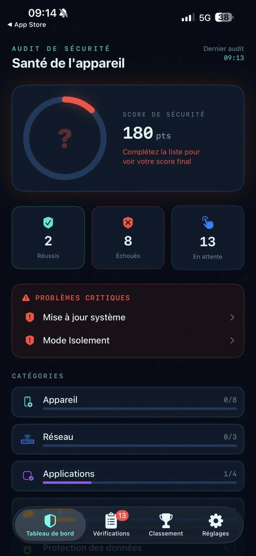 Um desenvolvedor criou um aplicativo de auditoria de segurança para avaliar a segurança e a privacidade do seu iPhone. Baseado nas recomendações da ANSSI e CISA, o aplicativo é baseado em 23 testes de segurança.