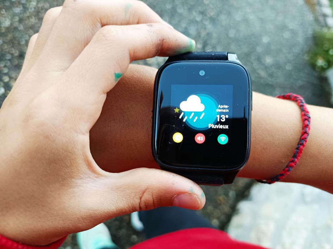 Ainda do lado infantil, este último só pode enviar mensagens de voz e emojis, pois não há teclado. Há também pequenos jogos, calculadora e exibição de informações, como boletim meteorológico ou o número de passos dados durante o dia. Chamadas e mensagens de áudio só são possíveis para números autorizados pelos pais. Da mesma forma, é impossível entrar em contato com a criança através de um número não autorizado. Neste ponto, está bastante bem pensado.