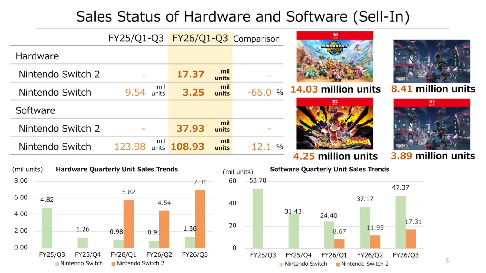 O contador da nova consola híbrida lançada em Junho passado ultrapassou os 17 milhões de unidades (17,37 milhões, incluindo 7 milhões do último trimestre), o que a coloca imediatamente acima da pobre Wii U. Após cinco anos de vida, a consola atingiu o tecto de vidro dos 14 milhões.