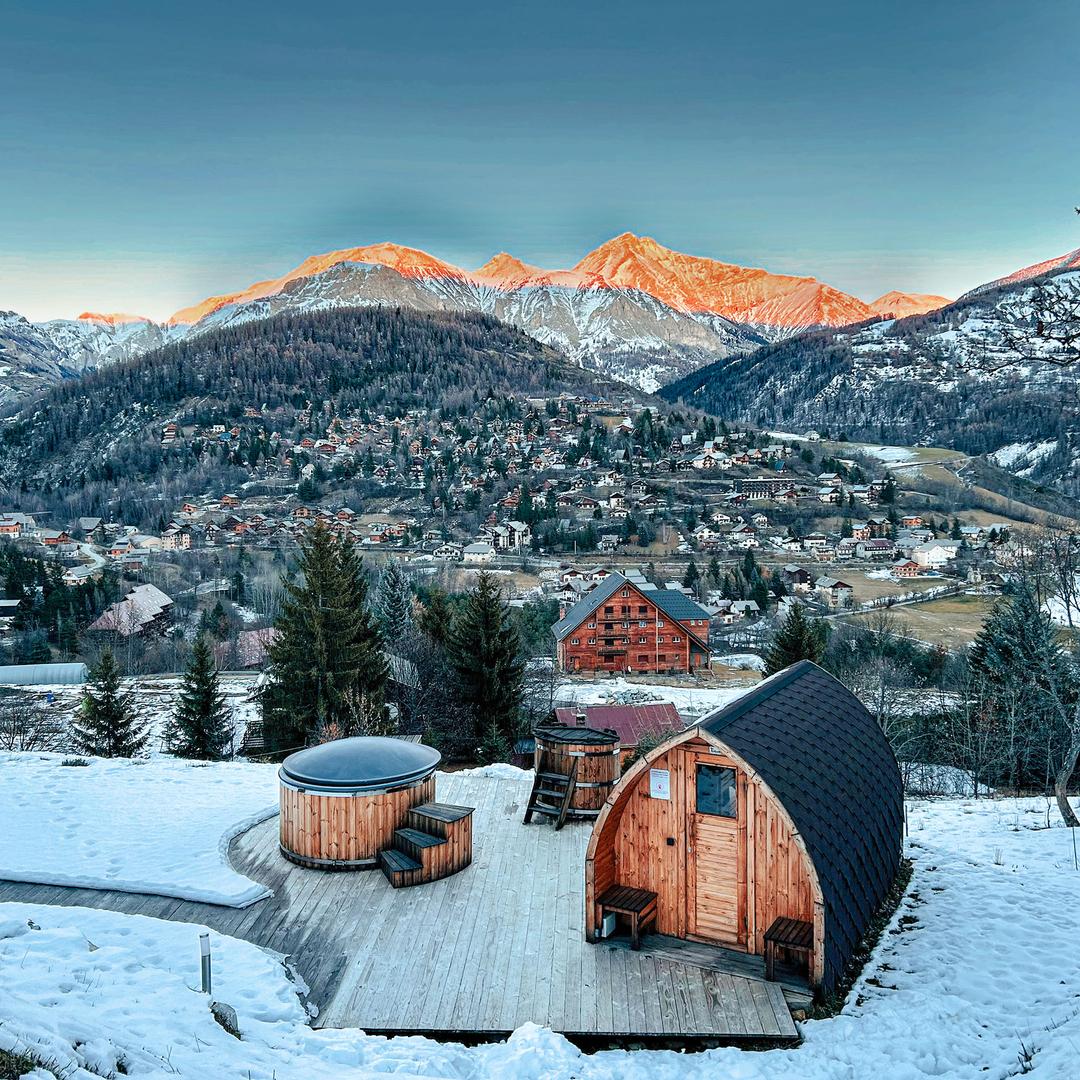 O jacuzzi é então uma escolha natural. A imersão muda tudo: lá pressão água hidrostática alivia articulações, melhora o retorno venoso e isqueiro a sensação de cansaço acumulado após esquiar. Os jatos massageadores estimulam a circulação profunda, enquanto o calor estável da água mantém o relaxamento. Na superfície, o vapor sobe no ar frio da noite. Nós elevamos o olhos..