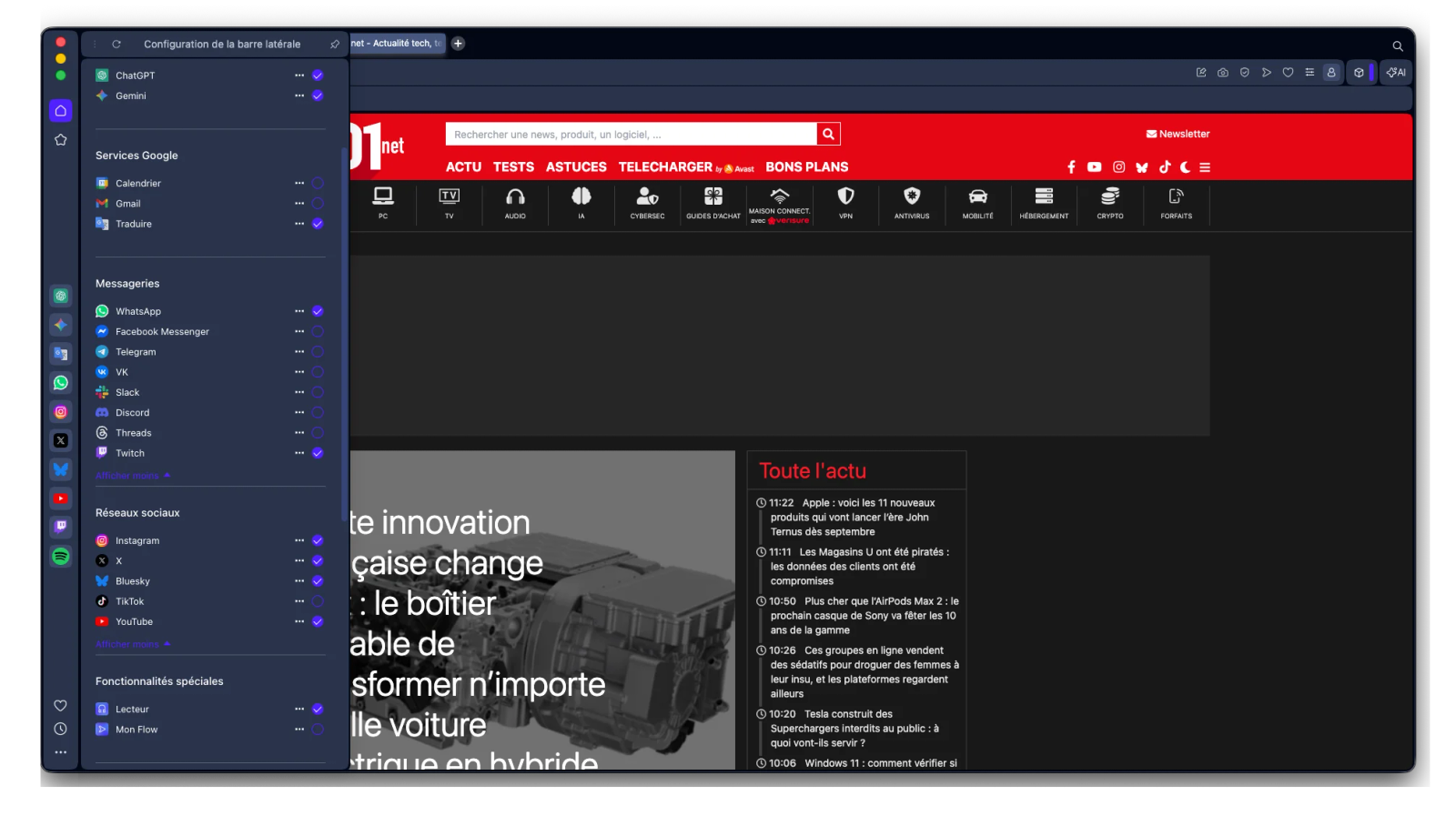 Uma verdadeira assinatura do Opera, a barra lateral que permite configurar atalhos de acesso direto a determinados serviços, e abri-los num painel separado do resto do navegador, acolhe dois novos serviços.