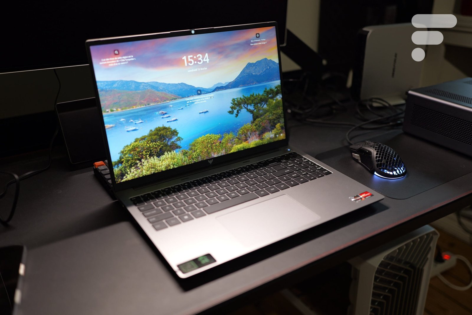 Mas não se engane: assim que colocamos a mão no teclado, a realidade nos alcança. Temos certeza QWERTY. Sim, a Acemagic fornece adesivos ou membrana de silicone para mudar para AZERTY, mas é DIY. Se você não digitar às cegas, o aspecto visual será prejudicado e a sensação sob os dedos ficará um pouco esponjosa.