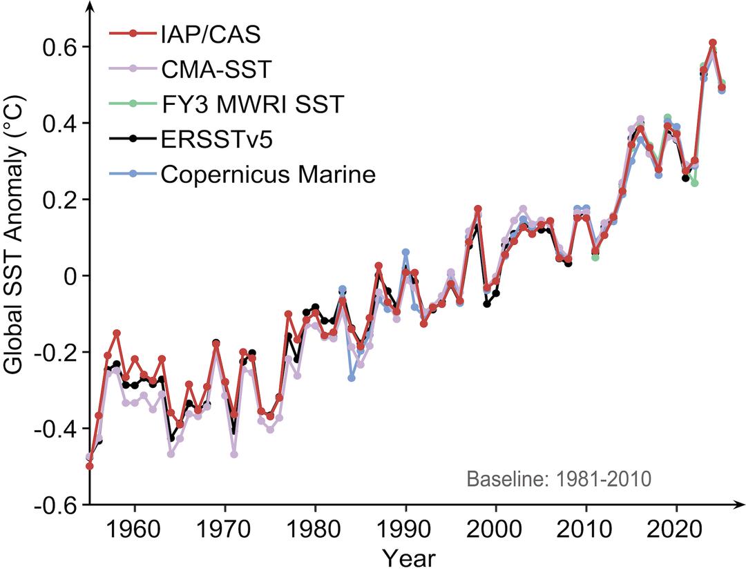 Uma visão geral da evolução das temperaturas da superfície dos oceanos em escala global desde 1958. © Pan e outros., Avanços nas Ciências Atmosféricas