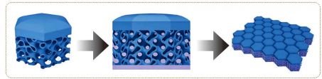 A armadura composta segue essa lógica de “ladrilho”. Fabricado em cerâmica injetada com alumínio, é otimizado por simulação para absorver a energia cinética dos projéteis e dissipar impactos. Crédito: FULONG ZHANG ET AL.