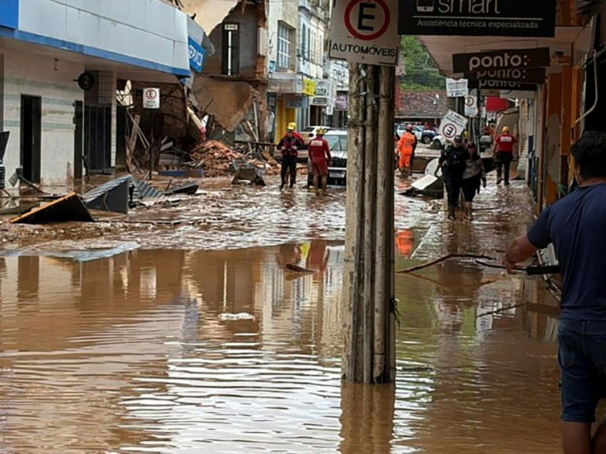 Os bombeiros combatem enchentes, deslizamentos de terra e riscos estruturais nas margens e em áreas próximas ao rio Paraibuna, que transbordou, disse o tenente Henrique Barcellos, do Corpo de Bombeiros de Minas Gerais.