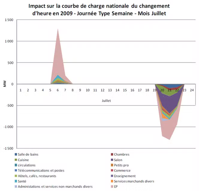 Assim, um estudo da Ademe publicado em 2010 concluiu que a mudança para o horário de verão leva a: