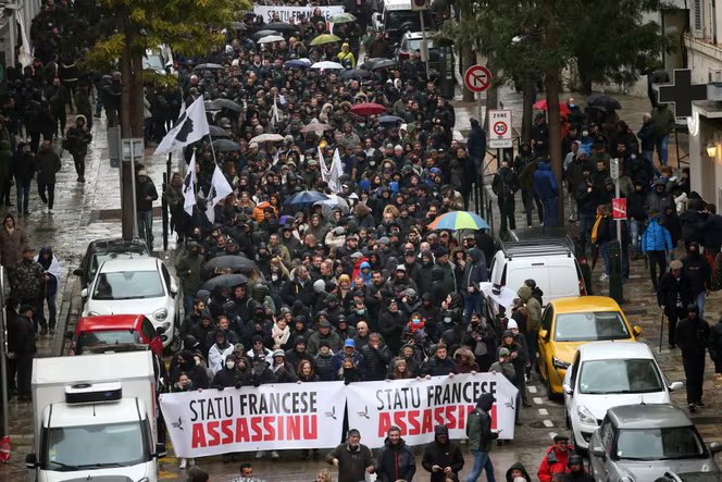 Durante uma manifestação de apoio a Yvan Colonna, uma semana após o seu ataque na prisão, em Bastia, 13 de março de 2022.