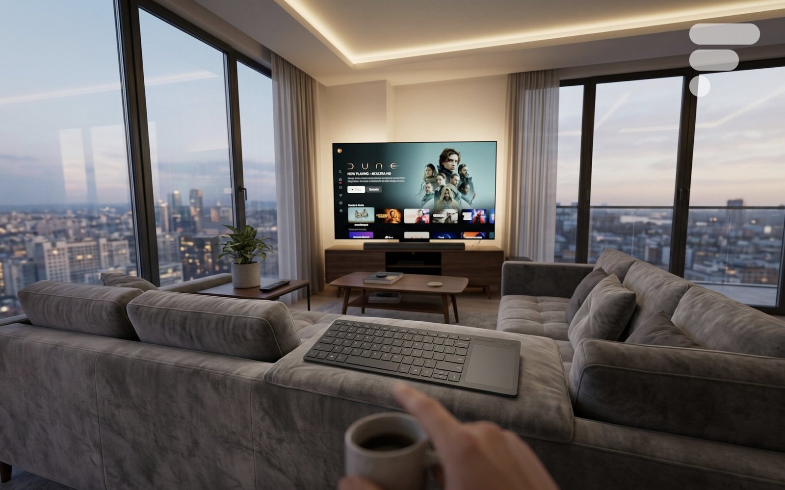 Por que tal formato? Framework tem dois usos específicos. Em primeiro lugar, a sala de estar: a sua elegância e o touchpad integrado tornam-no no companheiro ideal para controlar um PC ligado a uma TV.