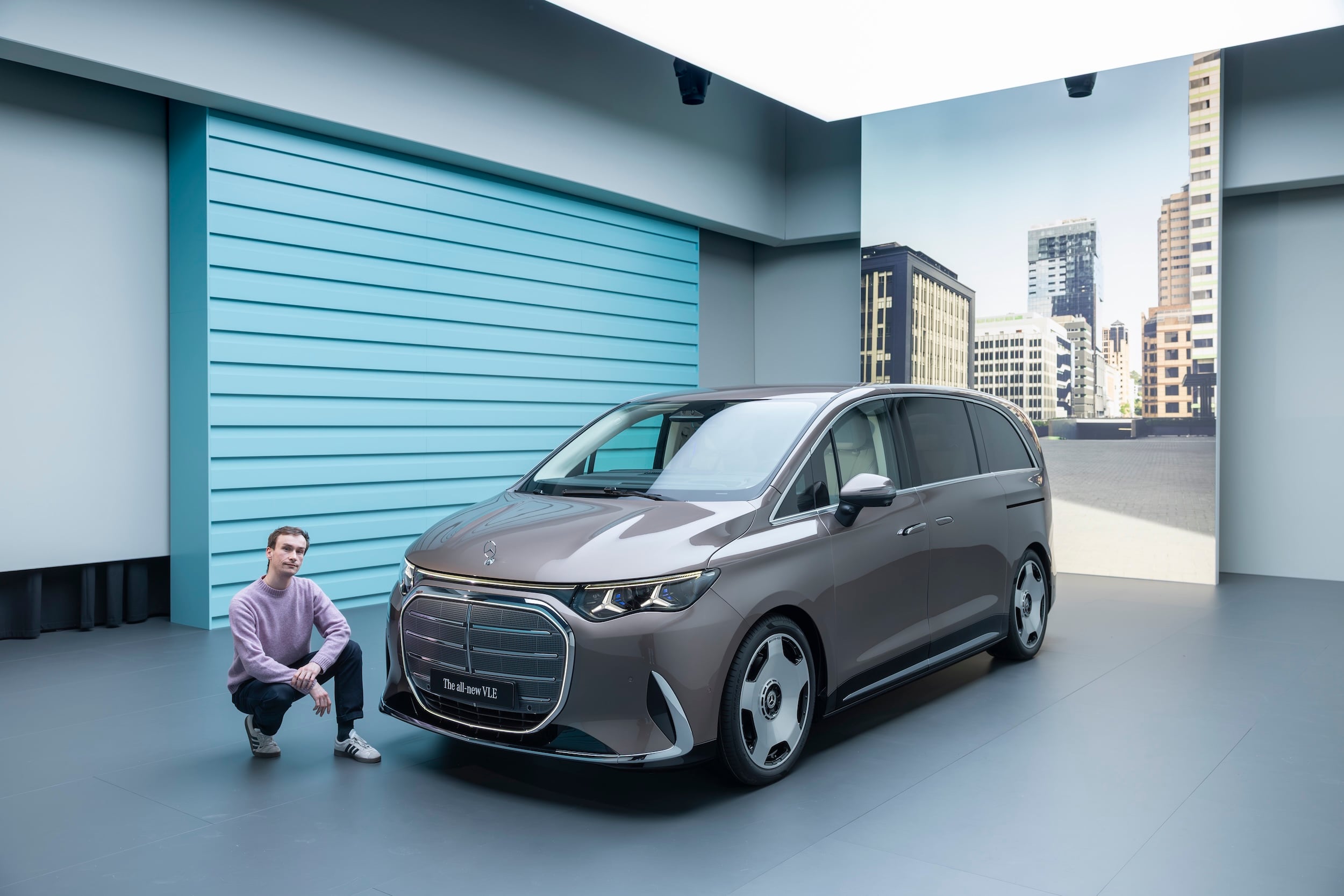 Le concept Vision V, présenté en avril 2025, n’était pas gratuit : l’extérieur du VLE en est une traduction fidèle. La face avant est assez intéressante, avec une véritable continuité entre ce van et les dernières voitures de la marque : la calandre, notamment, est étroitement reliée à celle du nouveau GLC – l’éclairage intégral en moins, même si un liseré de LED la ceinture.