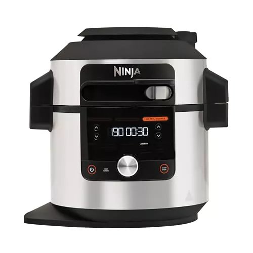 Com o Ninja SmartLid OL550EU, a Ninja redesenhou a ergonomia da multicooker. Este modelo, com capacidade de 5,7 litros e potência de 1690 watts, distingue-se pela tampa inteligente patenteada. Chega de tampa que você coloca na superfície de trabalho: o SmartLid inclina-se completamente para revelar uma superfície antiaderente adequada para cozinhar em fogo aberto. Esta inovação simplifica o uso diário: na posição “alta”, a tampa fechada permite cozimento sob pressão ou lento; na posição “baixa”, ele abre e dobra, transformando o aparelho em uma frigideira grande para tostar, reduzir o molho ou dourar a cebola sem sujar as mãos. Este modelo é ideal para quem quer economizar espaço e fluidez na cozinha. Também oferece uma função de fritadeira de ar muito eficiente graças à sua tecnologia de cozimento com ar quente. Para um casal ou uma família pequena, este modelo muitas vezes representa o equilíbrio perfeito entre versatilidade e facilidade de uso, tornando-o um sério candidato ao título de melhor multicooker Ninja para quem cozinha com frequência, mas não tem armazenamento.