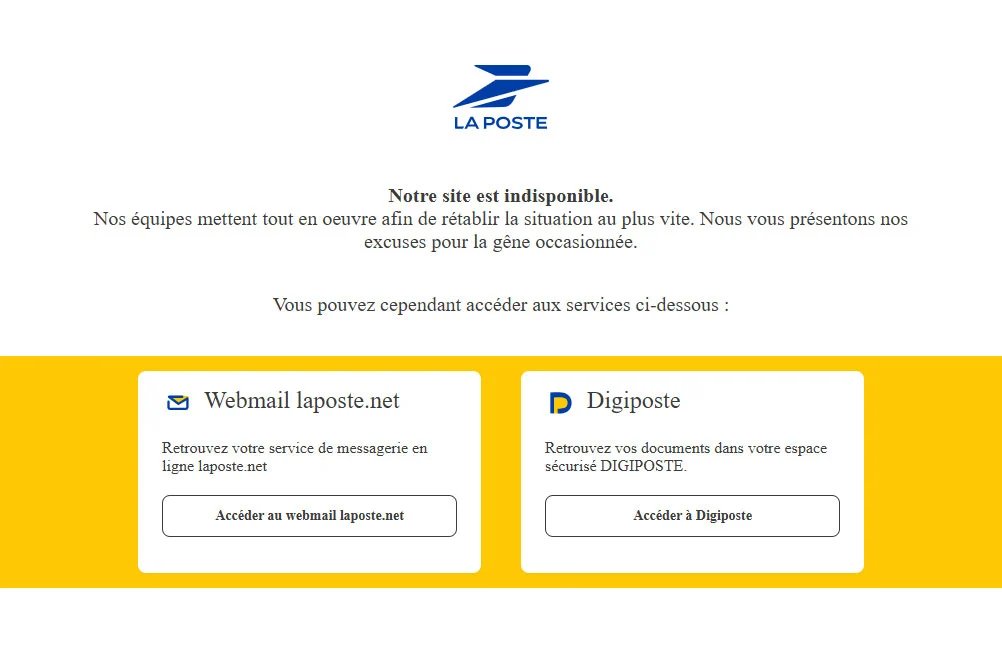 Manutenção indisponível do site La Poste 12 22 2025