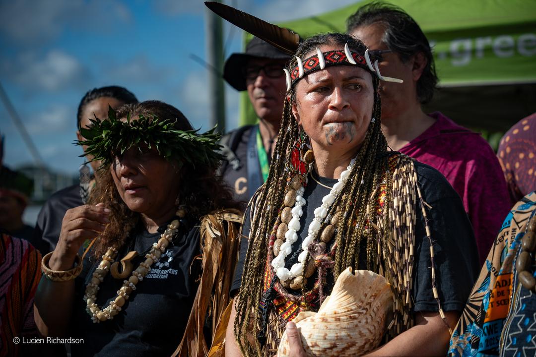 “ Meu papel é nos acordar, manter o espírito vivo, nos lembrar quem somos e por que estamos aqui. Podemos ser bons antepassados simplesmente através do respeito, da bondade, da partilha e do cuidado com os outros. », Whaia, representante Maori de Aotearoa (Nova Zelândia), acompanhada de sua filha Moana.
