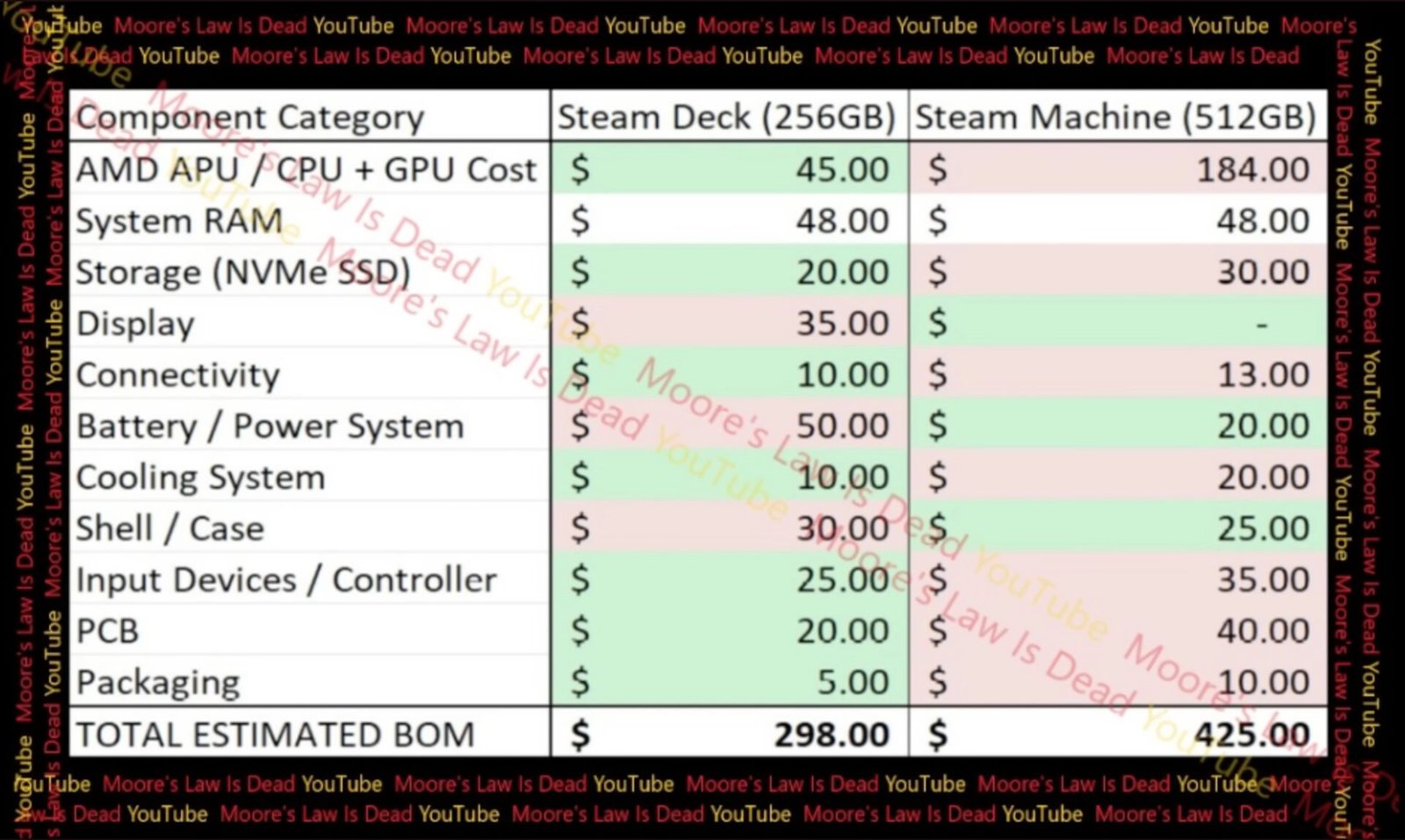 Dito isto, isso não responde à questão do preço da Steam Machine. O canal do YouTube A lei de Moore está morta lançou-se numa estimativa do custo dos componentes, uma operação tanto mais acrobática quanto a maior parte dos elementos da consola não existem comercialmente. As CPUs e GPUs são “parcialmente customizadas”, mas também é… todo o resto, desde o próprio case até o sistema de refrigeração que ocupa 70% do interior do aparelho.
