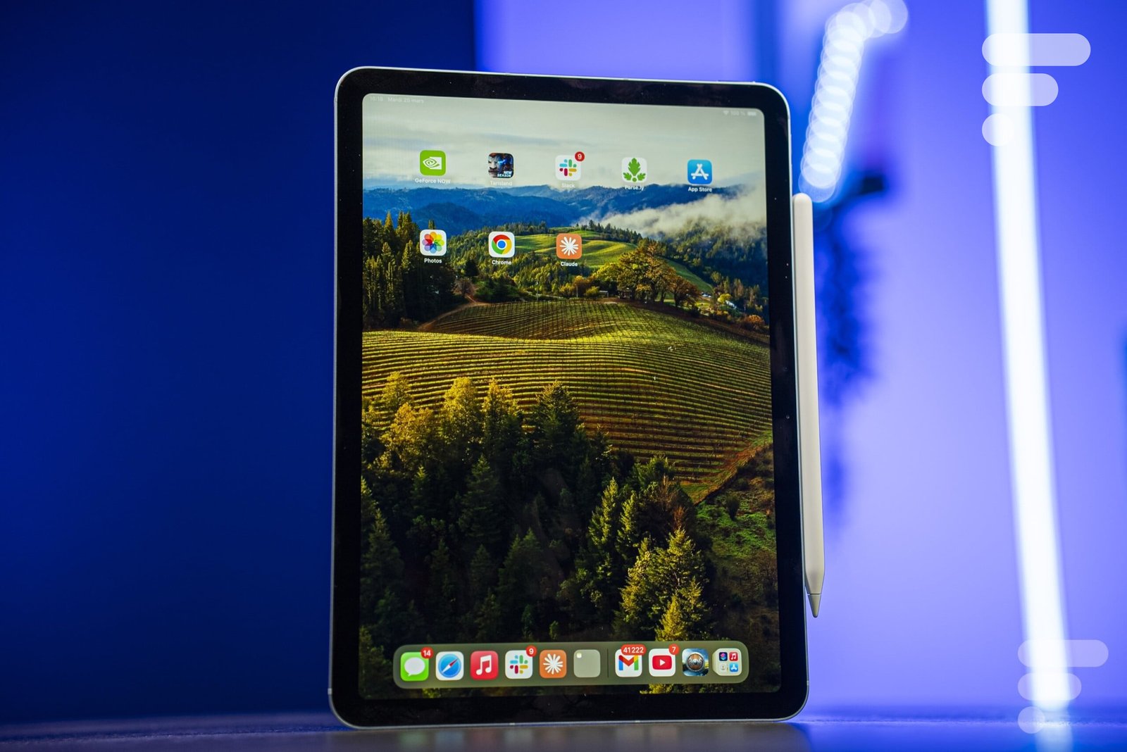 Nas entranhas do iPad, encontramos um chip M3 gravado em 3nm, com CPU de 8 núcleos, GPU de 10 núcleos e Motor Neural de 16 núcleos. Tudo para oferecer serviços de altíssimo nível: os aplicativos iniciam instantaneamente, o tablet se destaca no gerenciamento multitarefa e mantém uma fluidez impecável mesmo quando várias abas estão abertas. Também não foge das tarefas mais exigentes (edição de vídeo 4K no Final Cut Pro, criação complexa no Procreate, etc.). Os jogadores poderão até rodar títulos AAA em excelentes condições (mesmo que o iPadOS não tenha jogos AAA…) e se beneficiar do ray tracing acelerado por hardware para efeitos de iluminação ultra-realistas. Resumindo, o salto no desempenho é espetacular em comparação com o iPad Air M1.