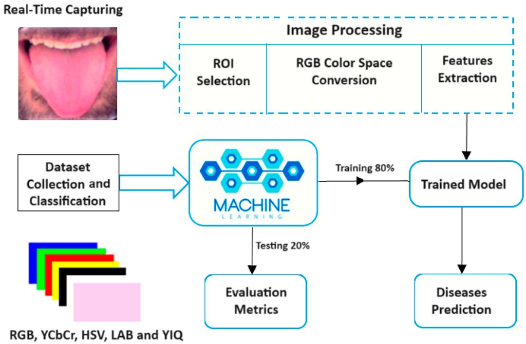 Em artigo publicado na revista Tecnologiasos pesquisadores treinaram inteligência artificial em 5.260 imagens de línguas saudáveis em diferentes condições de iluminação. Eles então usaram 60 imagens de línguas de aparência anormal de pacientes com diferentes patologias, como diabeteseu’asmalá COVID-19 ou mesmo um anemia.