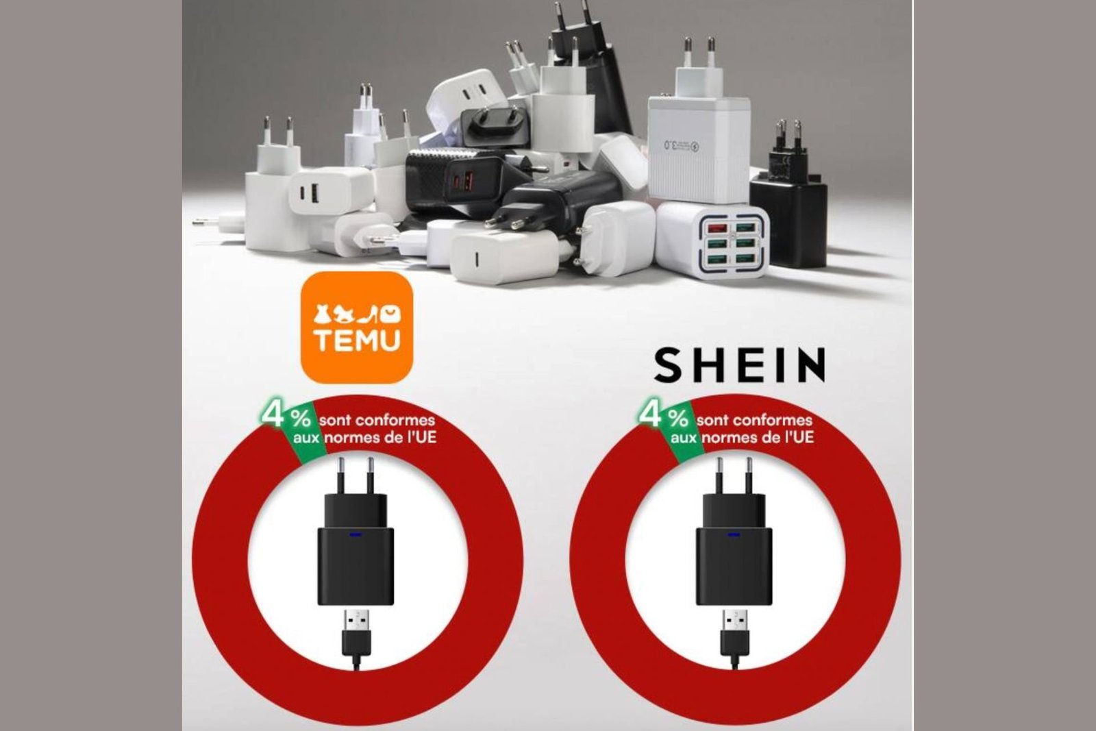 A associação de defesa do consumidor testou cerca de cinquenta carregadores USB encomendados nas plataformas de comércio eletrónico Shein e Temu. Ela acredita que “muitos deles (representam) riscos reais de queimaduras, choques elétricos e incêndios aos seus usuários”.
