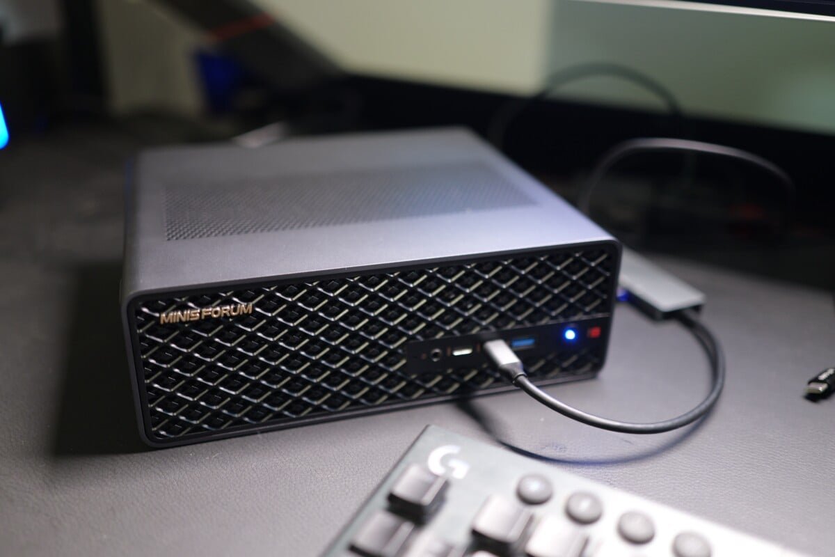 En revanche, Minisforum indique explicitement que l’ajout de cartes graphiques dédiées n’est pas supporté. On peut néanmoins utiliser une carte graphique externe (eGPU) via un des ports USB4.