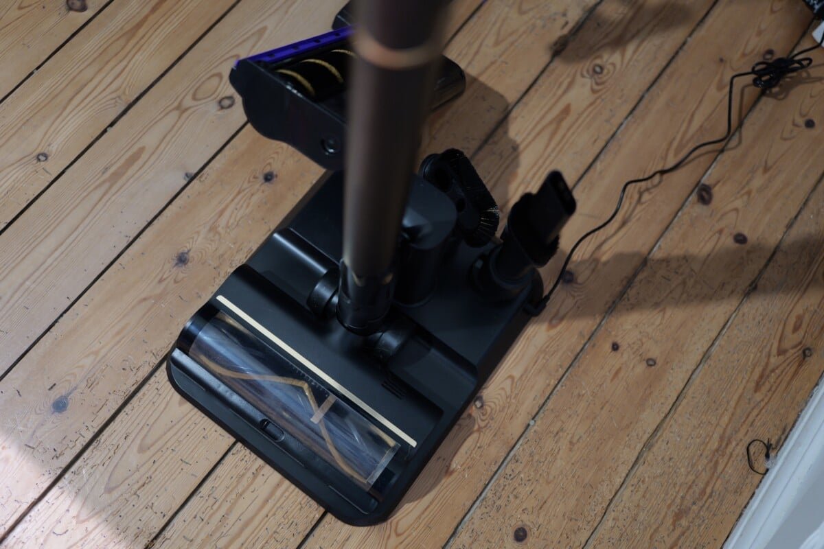 Montar o aspirador em si é uma brincadeira de criança. Tudo se encaixa com aquele pequeno “clique” satisfatório que exala boa qualidade de construção. Não estamos lidando com plástico “barato” que range. O que é inteligente é que a estação foi projetada para acomodar todos os acessórios. Chega de caixas de gorjetas esquecidas no fundo do armário que você nunca tira. Aqui está tudo à mão.