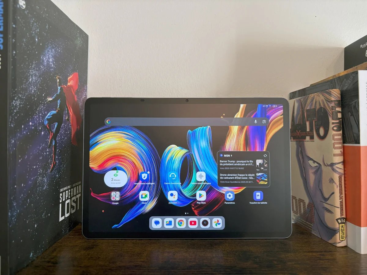 Em uso, este tablet nos conquistou claramente. Tanto é que, para certas viagens, o testador preferiu levar este TCL em vez de um Kindle Scribe ou um iPad. Seu display permanece legível em todas as situações, exceto quando o sol incide diretamente sobre ele. Você só precisa incliná-lo ligeiramente para encontrar um bom conforto de leitura. Além disso, gostamos muito do acabamento fosco que dá um efeitozinho de papel quando “viramos” as páginas.