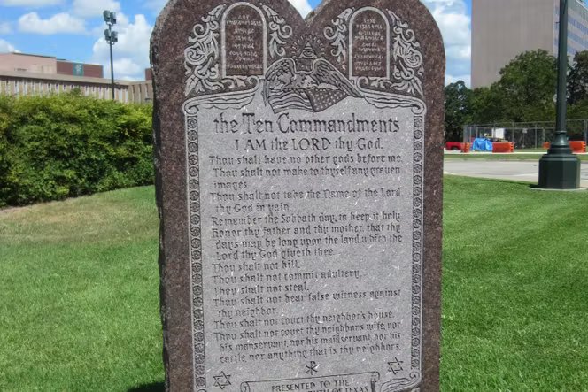 Em Junho de 2025, o estado adoptou uma lei que exige que as escolas públicas exibam estes preceitos bíblicos. “em um lugar de destaque na sala de aula”. Funcionários de escolas do Texas, várias famílias e a União Americana pelas Liberdades Civis (ACLU) contestaram a lei em tribunal, argumentando que as crenças religiosas são preocupação dos pais e das comunidades religiosas, e não das escolas públicas.