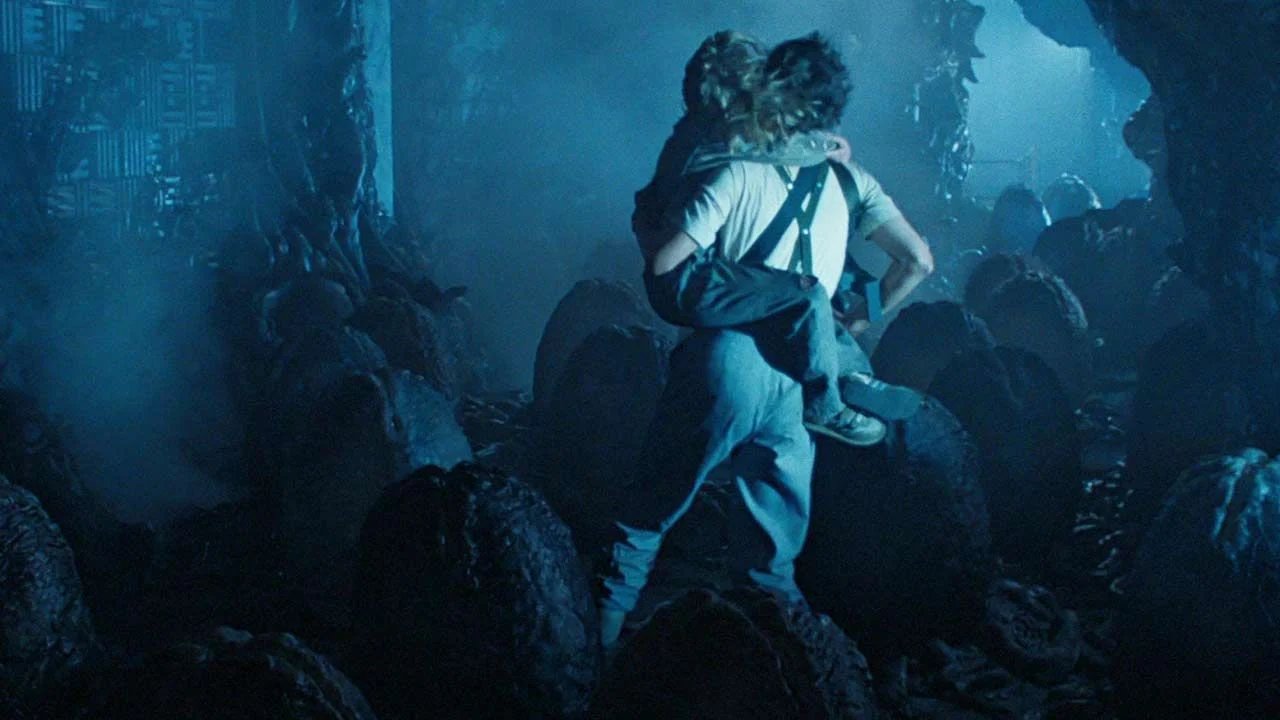 Essa sensação de terror paralisante inspirou a cena em que Ripley (Weaver), acompanhada da pequena Newt (Carrie Henn), descobre que está no centro do ninho da Rainha Alienígena, cercada de ovos.
