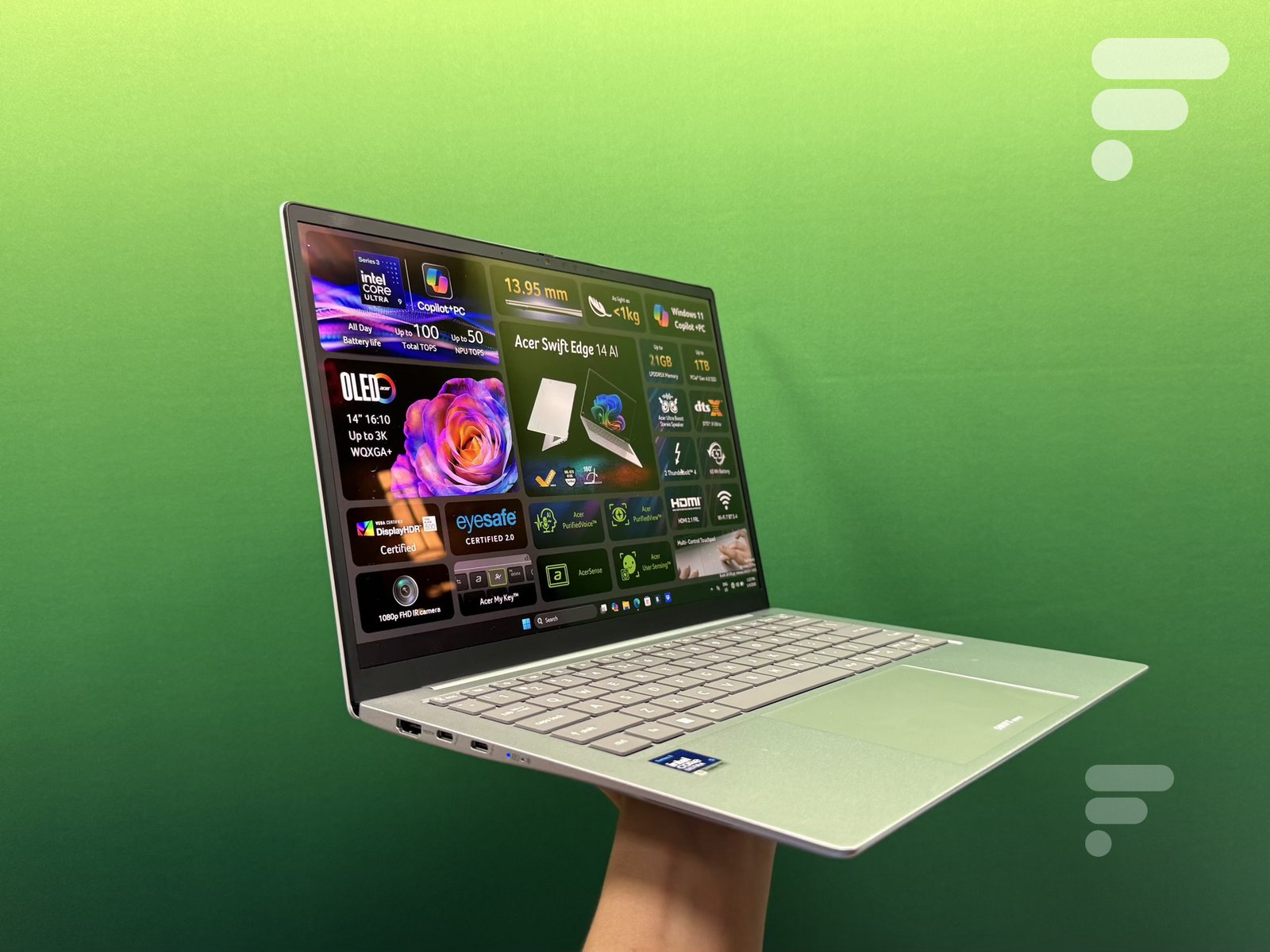 O Acer Swift Edge 14 AI oferece um painel Oled de 2880 x 1800 pixels com cobertura 100% DCI-P3.