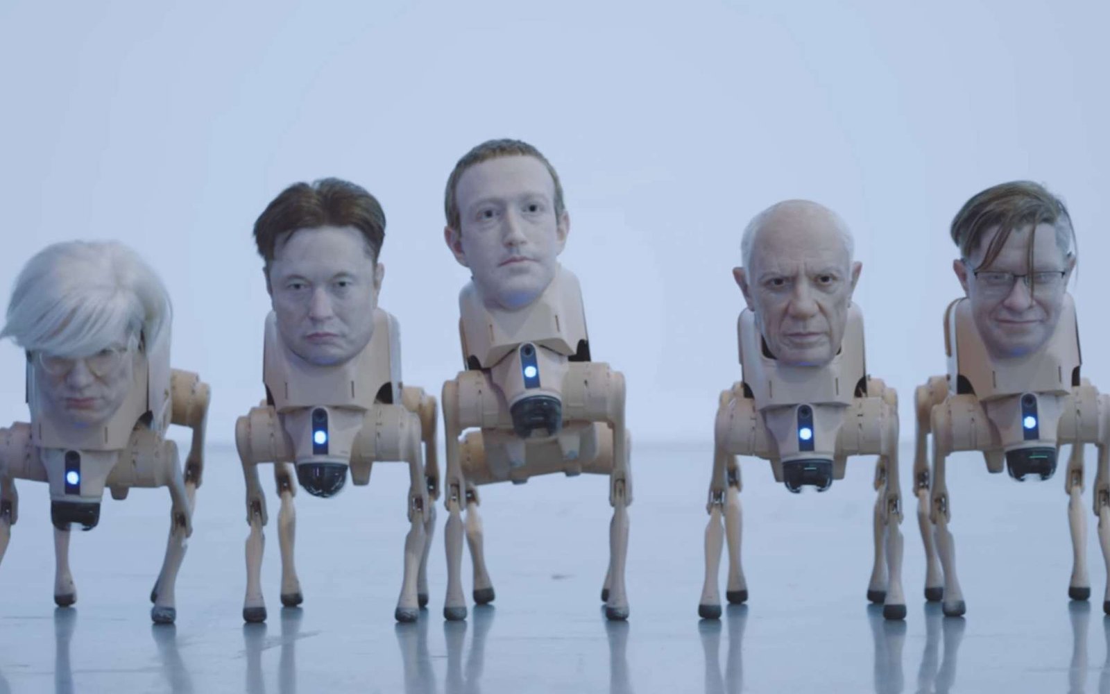 Esta é sem dúvida uma das instalações de arte mais estranhas. Batizado Animais normaisé o trabalho de Mike Winkelmann, apelido Besouro. É particularmente conhecido por ter vendido uma imagem JPG na forma de NFT por US$ 69 milhões em 2021. O artista decidiu adicionar cabeças silicone celebridades muito realistas em robôs-cães que andam por aí e imprimem fotos transformadas por IA.
