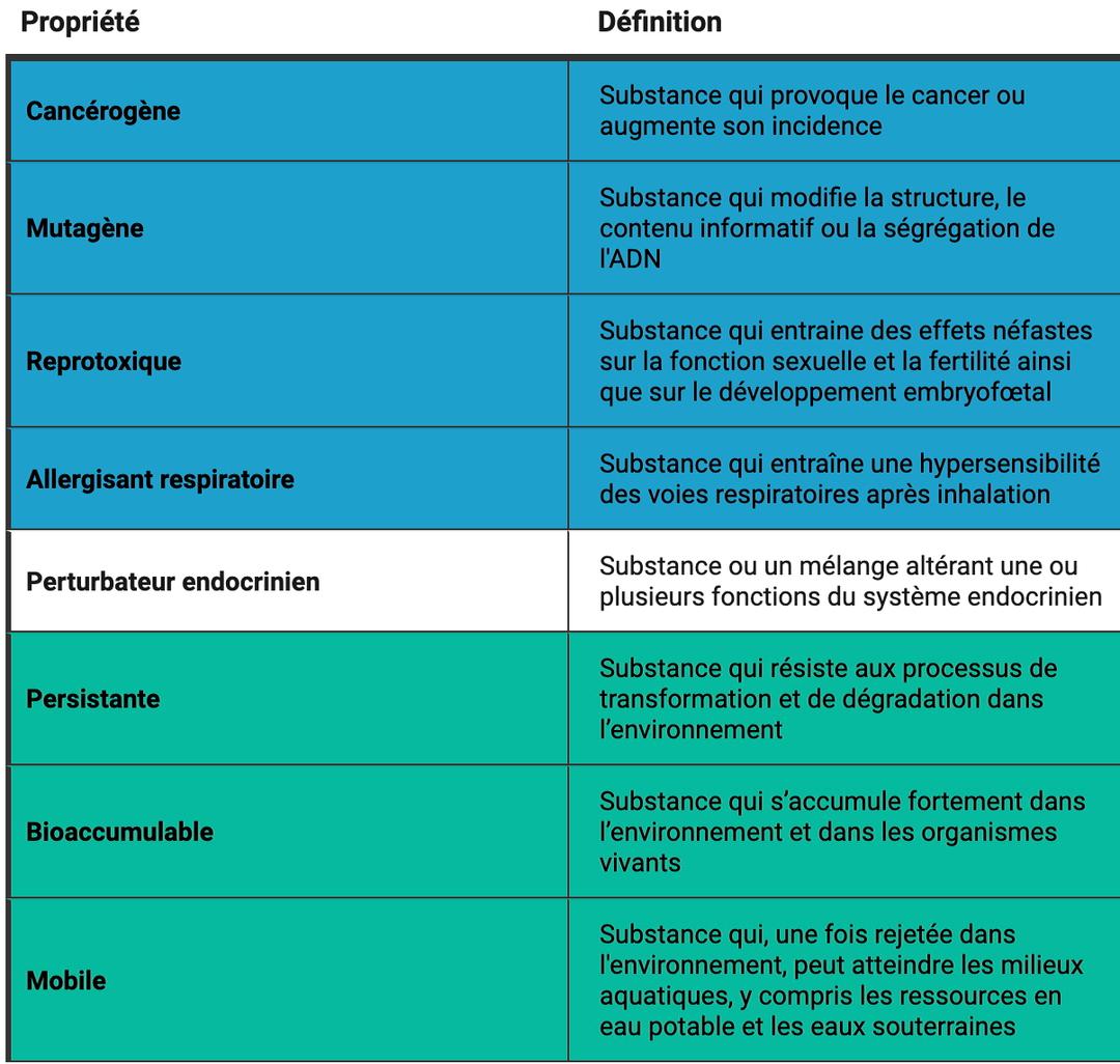 Moléculas cancerígenas, reprotóxicas, ambientalmente persistentes e outras substâncias nocivas