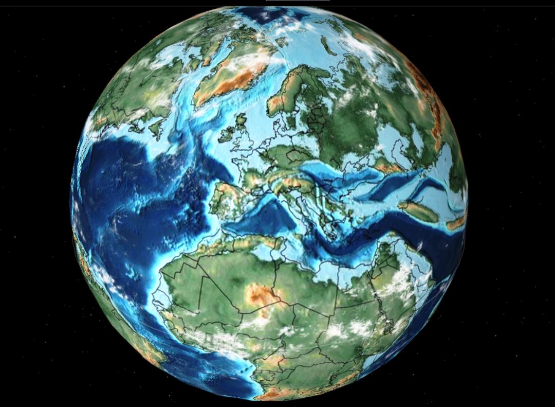 Uma reconstrução da paleografia do Cretáceo há 66 milhões de anos. Vemos a ilha franco-ibérica. © CR Scotese Ian Webster