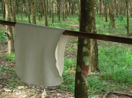 Uma “folha” de borracha proveniente do processamento primário na Tailândia. Créditos: Laurent Vaysse