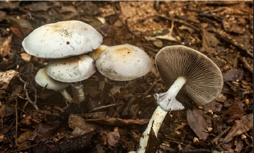 A nova espécie Psilocibo ochraceocentrata compartilha um ancestral comum com o famoso cogumelo psicodélico Psilocibo cubensis. ©Bradshaw AJ e outros.2026, Anais da Royal Society B