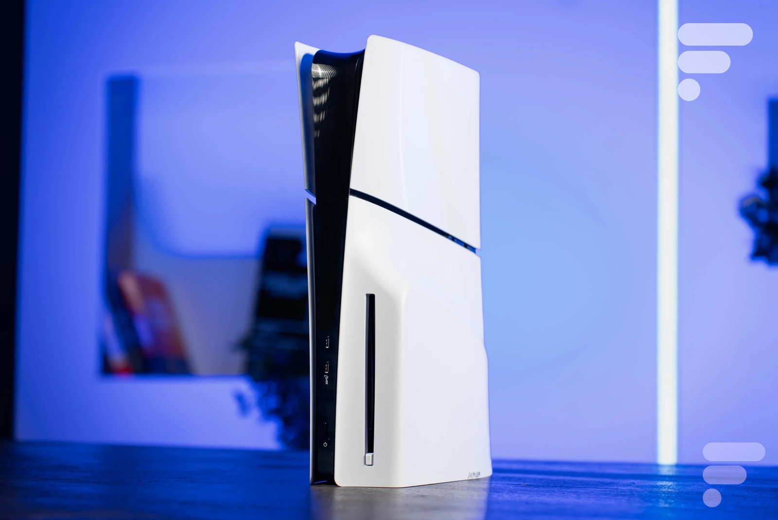 O PlayStation 5 Slim substituiu o primeiro console de próxima geração da Sony há dois anos. E trouxe consigo muitas coisas novas. Seu design renovado é o primeiro: mais compacto (358 x 96 x 216 mm, contra 390 x 104 x 260 mm) e menos pesado (3,2 kg, contra 4,5 kg), a versão Slim foi, como o próprio nome sugere, um pouco refinada. Mas apesar desta ligeira redução de tamanho, ele não libera muito espaço depois de instalado próximo à tela da televisão ou do PC.