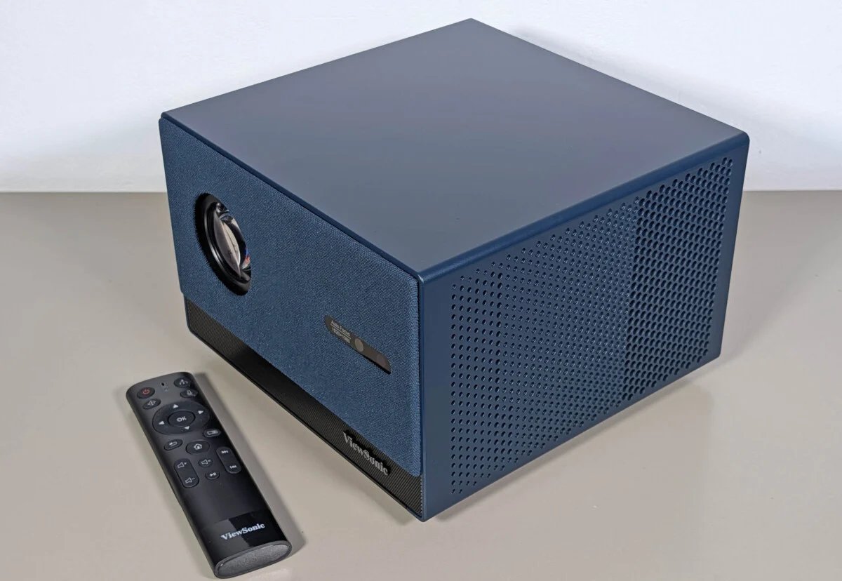 Le ViewSonic LX60HDB adopte un format résolument cubique compact, avec des dimensions d’environ 228 x 227 x 159 mm et un poids légèrement supérieur à 3 kg, ce qui en fait un appareil facile à déplacer d’une pièce à l’autre ou à ranger dans un meuble lorsque l’on ne s’en sert pas.