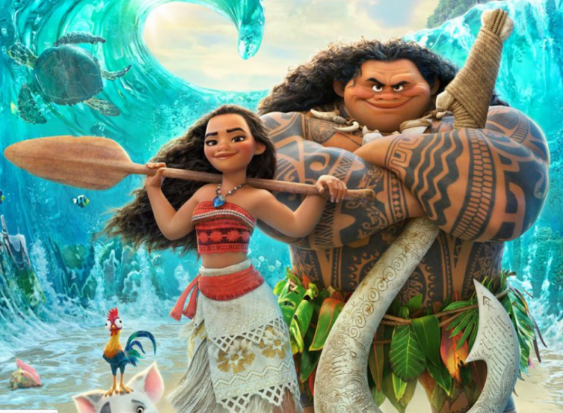 Para a heroína, tratar-se-á menos de fazer a transição para a idade adulta do que de realizar um feito heróico e sobrenatural para restaurar a ordem no mundo. Ao longo do caminho, ela terá que domar Maui, um semideus desonesto capaz de mudar sua aparência graças ao seu gancho mágico. Em algum lugar entre Loki e Hércules, se tivéssemos que interpretar mitologia comparada, mas acima de tudo um personagem puro da Disney, primo do gênio deAladim com suas antiquadas tatuagens animadas em 2D de Eric Goldberg (pai do Genius, aliás), que retratam um hilariante mini-Maui mudo com existência própria. Uma personagem que é uma síntese em si, assim como Moana é também uma síntese da preocupação da Disney em mudar aos poucos sua receita, começando pelos personagens por se tratar de uma figura feminina forte e ilustrando a “diversidade” como se costuma dizer nos Estados Unidos.