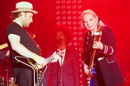 Véronique Sanson e seu filho, Christopher Stills, nas Francofonias em La Rochelle em julho de 2018