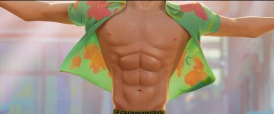 Não suspeitamos, mas esta sequência em particular dificultou a equipa… e suscitou muitas questões. Especialmente quando a camisa de Abby expõe seu corpo. Se o abdômen da personagem demorou seis meses de trabalho segundo Maggie Kang, outra coisa foi debatida: os mamilos de Abby. “Não sei dizer quantas reuniões foram discutidas se os meninos deveriam ter mamilos e onde eles seriam colocados no peito.”diz Joshua Beveridge. “Na animação não costumamos mostrar mamilos“, explica a produtora Michelle Wong. No final das contas, foi decidido que Abby realmente teria mamilos. “Fizemos com a textura mais leve possível”, ela acrescenta.