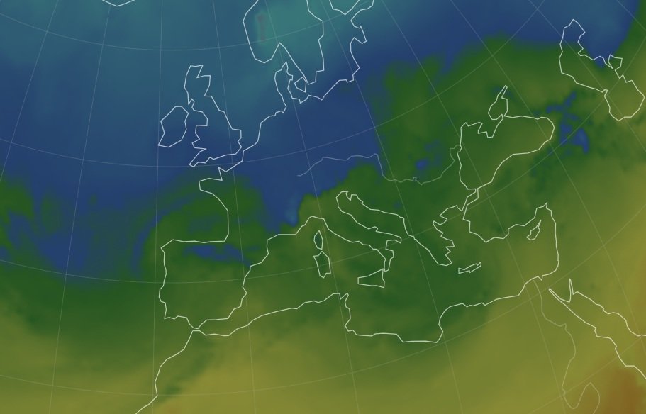 O ar frio descerá da Escandinávia em direção ao leste da França (em azul), mas muito menos para o oeste. © Nullschool