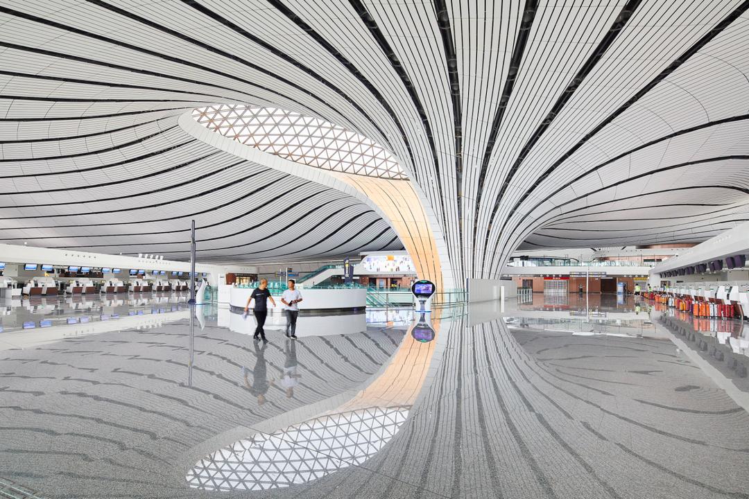 O interior do Aeroporto Internacional Daxing de Pequim, inaugurado em 2019. © Hufton+Crow
